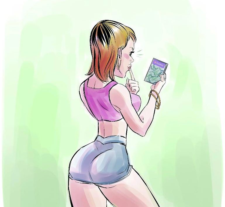“…Así que…¿te gusto? El contesta: Sí claro, pero no sé, en fin… Se miran en silencio. El hombre dice: No te ofendas, pero me gustaría saber ante todo si te sentaste conmigo por razones de trabajo… La muchacha lo acaricia y le dice: No, bobito, estoy acá porque me enamoré …